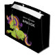 Saco de presente de aniversário com uma imagem de um unicórnio estilo Frankenstein. Cor roxa e verde. Muito fofo.