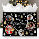 Torne seus presentes de férias especiais extra com um saco de presentes de fotos personalizado! Este modelo editável é personalizado com cinco de suas fotos favoritas, e o nome do destinatário, o nome da sua família ou o ano de feriado. Um design elegante com quadros de imagem em forma de círculo, colocado sobre um fundo com padrão. Apresenta "Feliz Natal" na tipografia da escrita, com árvores festivas, flocos de neve e motivos estelares — uma mistura de elementos tradicionais do Natal e estilo moderno, com linhas simples e limpas e formas geométricas. Perfeito para fotos de crianças, família, amigos e animais de estimação! Este saco de presentes está disponível com um acabamento mate ou brilhante. Cores impressas: preto, branco e ouro.
