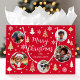 Torne seus presentes de férias especiais extra com um saco de presentes de fotos personalizado! Este modelo editável é personalizado com cinco de suas fotos favoritas, e o nome do destinatário, o nome da sua família ou o ano de feriado. Um design elegante com quadros de imagem em forma de círculo, colocado sobre um fundo com padrão. Apresenta "Feliz Natal" na tipografia da escrita, com árvores festivas, flocos de neve e motivos estelares — uma mistura de elementos tradicionais do Natal e estilo moderno, com linhas simples e limpas e formas geométricas. Perfeito para fotos de crianças, família, amigos e animais de estimação! Este saco de presentes está disponível com um acabamento mate ou brilhante. Cores impressas: vermelho, branco e ouro.
