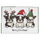 Uma bela ilustração dos cães de Boston Terrier vestidos para o Natal. Perfeito para amantes de animais de estimação e pais de cães durante o feriado.