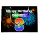 Este design de sacola de presente vibrante e divertida apresenta um padrão colorido inspirado em fogos de artifício celebratórios, juntamente com o número "3" com um padrão de gradação inspirado no arco-íris multicolor, num fundo preto colorido. Ele também apresenta um nome personalizado e uma mensagem de evento, como uma saudação de aniversário. Uma bolsa de presente divertida como esta poderia ser usada ao embrulhar um presente ou presente sendo dado em comemoração do terceiro aniversário de alguém. [~Z0000328]