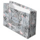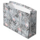 Esse grande saco de presentes apresenta um padrão maravilhoso de flamingos cercados por folhagem tropical abundante e orquídeas em cinzas quentes e rosa-pincel. Foi fornecido um rótulo para guardar o seu nome e monograma ou outro texto. Procure ID868 para ver outros produtos com este padrão tropical legal.