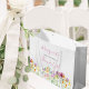 Saco de presente personalizado de flor silvestre para a sua floricultura. Este bonito design floral tem flores silvestres de cor aquosa em laranja lilás rosa e amarelo com elegante tipografia manuscrita. O modelo está preparado para você também adicionar o nome da florista, o nome da noiva e noiva e a data do casamento. Você também pode editar Flower Girl para outra pessoa na sua festa de casamento. Por favor, navegue na minha loja - coleção de prados de flores silvestres - para coordenar itens.