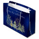 Sacola Para Presentes Grande Floresta de inverno com Aquarela em Árvores Noturn