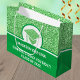 Personalize este grande saco de presentes de graduação em um esquema de cores verdes e brancas, um pouco de brilho falso para o aspecto elegante do brilho, um boné de formatura clássico e design de fita e três modelos de texto para que você possa criar o saco de presentes personalizado perfeito. A metade inferior desses sacos de presentes é verde com três linhas de texto branco em negrito, onde você pode adicionar o nome do formando, parabéns e CLASSE DE 20XX (adicionar o ano de graduação) ou qualquer texto curto que quiser. A metade superior desses grandes sacos de presente de graduação personalizada tem um fundo de falso brilho verde, um círculo branco parcial e o tradicional prato de mortalha e motif em um brilho verde correspondente ao faísca verde. Perfeito para o seu segundo grau ou formando universitário, crie a bolsa perfeita de presente verde e branco para o seu formando e apresente o seu presente de uma forma verdadeiramente única.