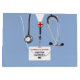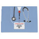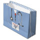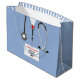 Saco de presente de formatura de faculdade de medicina único para graduado em medicina com scrub hospitalar azul e estetoscópio. Edite o texto para adicionar o nome do médico, assistente médico ou enfermeiro e credenciais médicas.