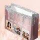 Para um aniversário feminino e glamouroso de 21 ruas (ou qualquer idade). Um fundo cor-de-rosa pincelado com pingos falso de brilho prateado, aparência de pingar tinta. Personalize e adicione 3 fotos e 21 anos. Texto branco.
