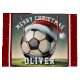 Futebol de futebol, Bola de Papai Noel, dá o nome de Saco de Natal. O design tem uma bola de futebol com um chapéu vermelho de Papai Noel. Personalize com seu nome. Você pode mudar o texto Feliz Natal.