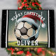 Futebol de futebol, Bola de Papai Noel, dá o nome de Saco de Natal. O design tem uma bola de futebol com um chapéu vermelho de Papai Noel. Personalize com seu nome. Você pode mudar o texto Feliz Natal.