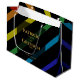Bold, striking, and impossible to miss on any gift table — this personalized large gift bag features the grooms' names and wedding date against the signature diagonal rainbow stripe design on black. A thoughtful upgrade for guests wanting to add a personal touch to their gift, or for the grooms presenting their own gifts to guests, wedding party, or family in style.