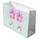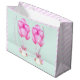 Bolsa de presentes para raparigas gêmeas doce, com balões cor-de-rosa e ilustração de gêmeos recém-nascidos.