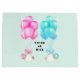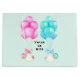 Saco de presentes criativo de gêmeos bebês com balões rosas e azuis e bebês gêmeos e meninos.