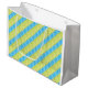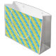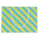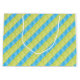 Symmetrical grid of crumpled paper textures in alternating greenish-yellow and light blue, creating a vibrant, tactile striped pattern with depth and visual rhythm