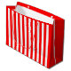Saco grande com listras vermelhas e brancas na frente e atrás. Ambos os lados são vermelhos sólidos. Personalizável. Moderno e moderno, é a bolsa clássica perfeita para doação de presente.