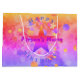 Saco de presente de festa de aniversário com amarelo, laranja, rosa, roxo e outras cores, estrelas e bolhas, o nome do seu filho e as palavras Feliz Aniversário! Cozinhas e guardanapos vendidos separadamente. Desenvolvido por HAMbyWhiteGlove. conhecido como HAMbyWG.