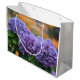 Este grande saco de presentes apresenta uma versão impressionista de lindas flores de hydrangea roxa. O texto pode ser alterado ou eliminado de acordo com a sua necessidade.