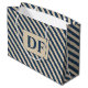 Esta "Iniciais personalizadas Blue/Vanilla Stripes Large Gift Bag" apresenta listras azuis e baunilha e pode ser personalizada com as iniciais do receptor. Torne seus presentes ainda mais memoráveis com este na moda e este saco de presentes personalizável.