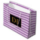 Esta "Iniciais Personalizadas, Stripes Roxas Grandes, Bag de presentes" apresenta faixas roxas e pode ser personalizada com as iniciais do destinatário. Torne seus presentes ainda mais memoráveis com este na moda e este saco de presentes personalizável.