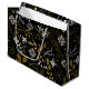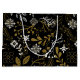 Intricate floral pattern with gold and white branches, leaves, and flowers on a black background. The design feels elegant and sophisticated.