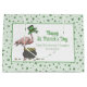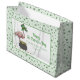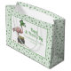 These festive Irish Shamrock Pink Flamingo St Patricks Day Large Gift Bag feature my playful pink flamingo wearing an oversized leprechaun hat beside a pot of gold coins, beautifully displayed inside a rectangular frame with your event details.