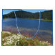 Expresse seu estilo de brinde com este saco-presente de estilo grande com jato azul e apresente uma foto de um lago cênico com flores silvestres coloridas que crescem ao longo da linha costeira. Selecione o estilo do seu saco-presente.