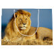 Grande sacola brilhante com uma imagem, na frente e atrás, de um leão africano. Veja confetti correspondente, bolsa de favor, etiqueta de favor, etiqueta, ímã guardado, adesivo quadrado e papel de embalagem. Veja toda a coleção Safari Gift Bag nos TOUCHES ESPECIAIS| Seção Favoritos para festas.