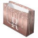 Saco de presente personalizado com monograma do nome em letra cursiva com brilho em rosa dourado. Este design apresenta seu primeiro nome em uma linda tipografia de letra manuscrita com cauda swash (ou caligrafia) e inicial em folha metálica ombre falsa rosa dourado com borda de brilho glamouroso e gotejamento de glitter rosa dourado. São fáceis de personalizar. Esta bolsa de presente feminina é ótima para presente de casa nova, também para aniversário, casamento, festa de 16 anos, dia das mães, chá de noiva, chá de bebê, presente de festa de formatura e é para a garota que ama coisas únicas e estilosas com brilho.