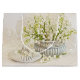 Uma vida estática de um lírio branco minúsculo das flores do vale num prato cercado por rendas. Fotografia de Sandra Foster © - Sandra Foster Designs.
