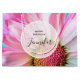 Grande saco de presentes com uma flor rosa e branca vibrante. Fechar a fotografia desta flor encantadora realmente atrai sua atenção. Um círculo semitransparente com o seu dentro de texto personalizado.