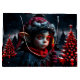Magia do elfo gótico debaixo da lua de cheio. Na silenciosa noite de neve, onde a lua lança sua luz prateada sobre a paisagem reluzente, posiciona um jovem elfo gótico, suas orelhas pontiagudas balançando ligeiramente no vento gentil. Seus grandes olhos vermelhos brilham como estrelas rubi-vermelhas e parecem guardar o segredo da noite. Na mão, ele segura uma vela em chamas, cuja chama é quente e viva, um pequeno ponto de luz na escuridão gelada.