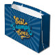 Faça seu presente de Dia de os pais extra especial com este saco de presente incrível para o vovô. Design apresenta "Best Grampa Ever" em caracteres retrorreflectores azuis e amarelos em um fundo azul de explosão solar.