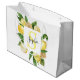 Sacola Para Presentes Grande Moldura de limões amarelos modernos e folhas com n