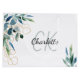 Um fundo branco elegante. Decorado com folhagem de eucalipto pintada à aguarela e folhagem dourada. Personalize e adicione um nome. O nome é escrito com uma fonte moderna de letra manuscrita. Perfeito para embrulhar presentes ou para lembrancinhas de aniversários, chá de noiva e chá de bebê.