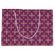Um saco-presente de quatro pontos florais de quatro pontos, roxo luxuoso e ouro, de grande porte, que pode ser personalizado acrescentando o monograma da pessoa da hora. Este elegante design de molho úmido monograma traz o seu lado sofisticado. Imagem plana, não metálica.