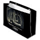 Saco de presente de aniversário com uma fotografia típica de tom de sépia preto e branco. Uma foto de uma sela de couro inglesa focada nos estribos de prata. Perfeito para entusiastas de equitação em inglês.