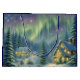Este Saco do Presente apresenta uma floresta de inverno nevada à noite com estrelas e auroras no céu. As casas estão brilhantemente iluminadas. Belo saco para os presentes de Natal! Custom Text.
