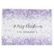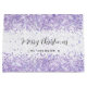 Um fundo branco de na moda decorado com violeta, faux confetti de cor lavanda, faíscas. Personalize e adicione seu nome de família. Texto: Feliz Natal.