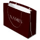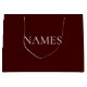 saca de presente grande com nome do script personalizado simples vermelho escuro e branco .