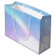 Saco de presentes com uma imagem de fundo suave e adorável. Azul pastel e nuvens cor-de-rosa com um arco-íris mágico.
