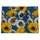 Padrão de vetor sem costura feito com margaridas desenhadas à mão, papoilas e preguiças. Versão amarela e branca.