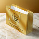 Saco de presentes de luxo com design de ouro elegante. Você pode personalizá-lo ao seu gosto e mudar o que quiser.