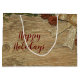Ouro Do Festa De Natal O Verde Deixa Um Grande Saco De Presente Rústico Vermelho. Único, bonito, na moda design. Fácil de ser personalizado. O estilo, o tamanho e as cores da fonte podem ser alterados. Itens correspondentes estão disponíveis.