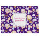 Saco de presente de aniversário feliz com um padrão bonito e caprichoso. Balões de ar quente e nuvens bonitas com rostos entre estrelas e corações e balões. As cores pastéis moles constituem este adorável design. Um quadrado branco em camadas acima com seu dentro de texto.