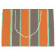 Sacola Para Presentes Grande Padrão verde, cinza e listras laranja