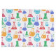 Saco de presentes com um padrão divertido e colorido. Cientista pesquisador vibe com bicos e frascos de diferentes formas e tamanhos em cores brilhantes e felizes.