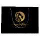 Simples e poderoso, esta bolsa de presente de aniversário apresenta uma ilustração de perfil de leão em ouro sobre um fundo preto contrastante. Dourada caligrafia "feliz aniversário" com modelo de texto para personalizar com o nome de convidado de honra. Faz um tema elegante para celebrar um aniversário de leo.