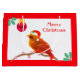 Bela ave de Natal com um pequeno pássaro branco e vermelho. O texto pode ser personalizado.