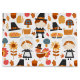 Saco de presentes com um padrão sazonal de Ação de Graças. Apresentando peregrinos brancos, perus, torta de abóbora e outros diversos elementos temáticos do outono.