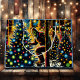 Saco de presente de Natal. Pé grande decorando árvores de Natal na floresta com ornamentos e luzes de Natal. Lua brilhando pelas árvores. Adicione um pouco de humor sasquatch ao seu Natal com este saco de presentes estilo cômico.