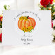 A Pequena Pumpkin está a caminho do Chá de fraldas Gift Bag com a abóbora laranja-aquática sobre fundo branco com girassóis amarelos. Alterar texto usando a opção personalizar esta modelo.